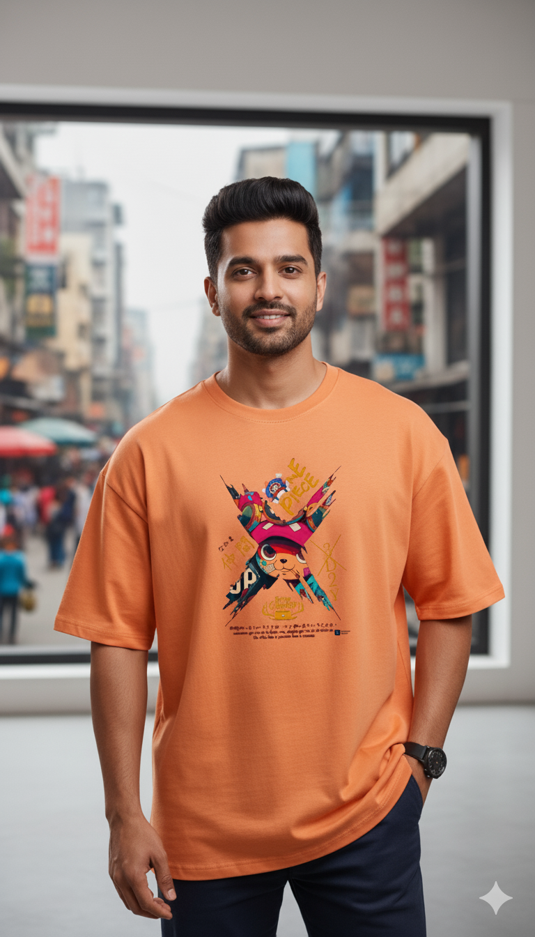 Join the crew in style — this 220 GSM heavyweight cotton tee is a tribute to the One Piece legend. Oversized for that perfect comfort fit, with a bold Chopper graphic that screams premium streetwear. Soft, durable, and made to turn heads.